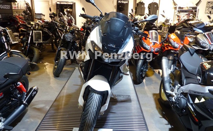 Die Moto Guzzi V100 Mandello ist das erste Motorrad der Welt mit einem adaptivem Aerodynamik-System: Ein System, das die Position der Deflektoren je nach Fahrmodus und Geschwindigkeit der Maschine anpasst. Je nach Fahrsituation, kann per Knopfdruck zusätzlich die Höhe der Verkleidungsscheibe eingestellt und der Winddruck auf den Fahrer um bis zu 22 % reduziert werden.
